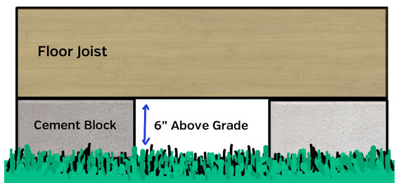 You don’t want the wood sitting on the ground because eventually it will rot, so you either use in-ground pilings or sit the floor on the ground separated by some type of concrete block.