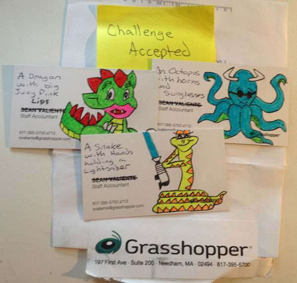 Grasshopper, the entrepreneur’s phone system, recently posted a picture on Facebook. The image was of a few business cards with sketches on them.